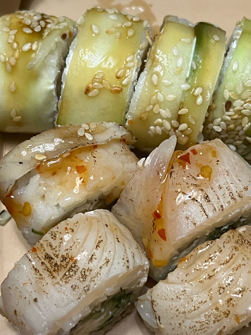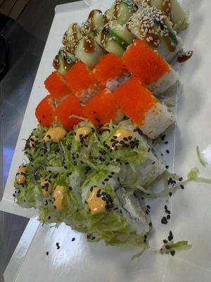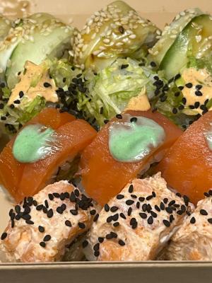 Роллы практически все неплохие ,НО как так вышло, что где-то рыба есть, а на каких-то просто обрывок. Ролл с лососем как будто не с ним, а с крашеной селедкой. Вкус не отличается совсем