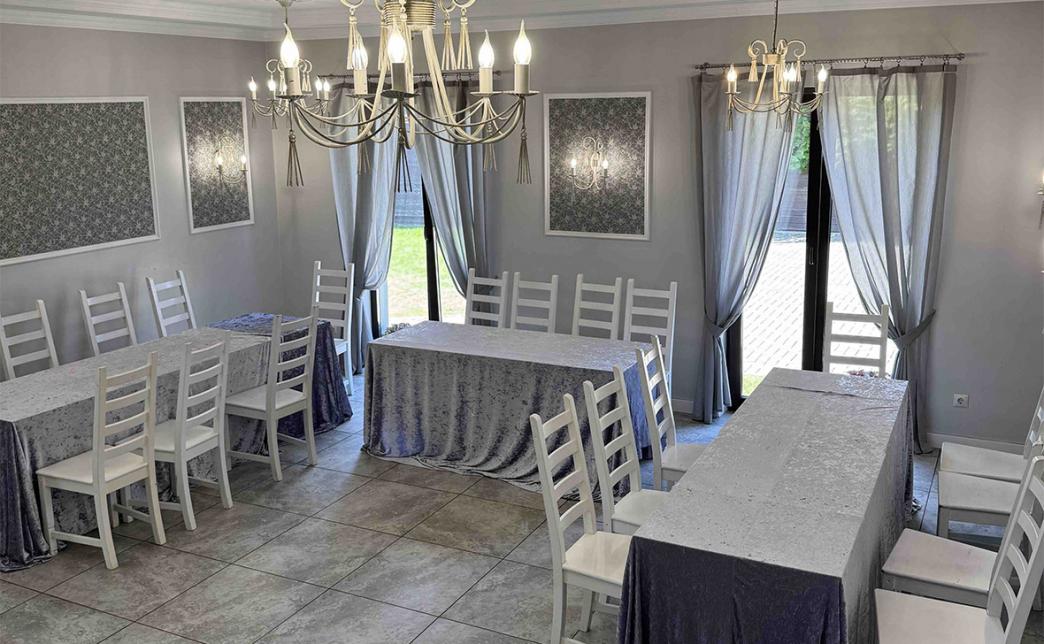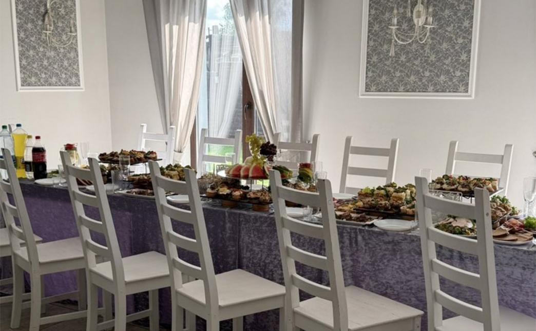 "Шале на Полоцкой" - красивый дом в центре города для комфортного проживания. На первом этаже находится зал, который идеально подходит как для проведения небольших свадеб, корпоративов, званных ужинов и дней рождении, так и для деловых мероприятий, таких как семинары, выставки, деловые переговоры и конференции. Банкетный зал отличается изысканным классическим интерьером с современным оснащением. Система климат-контроля позволит вам чувствовать себя комфортно в любую погоду. Бесплатный Wi-Fi обеспечит возможность быть всегда online, что особенно важно в наше время.