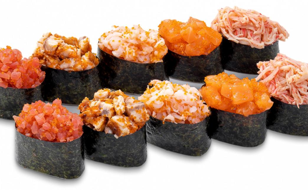 - гункан с тобикой: рис, тобика (красная или черная) - 2 шт.