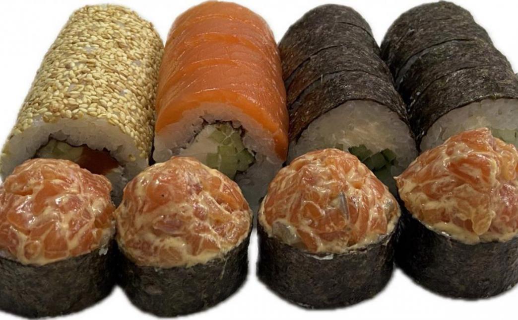- тар-тар с лососем: лосось, сливочный сыр - 8 шт.