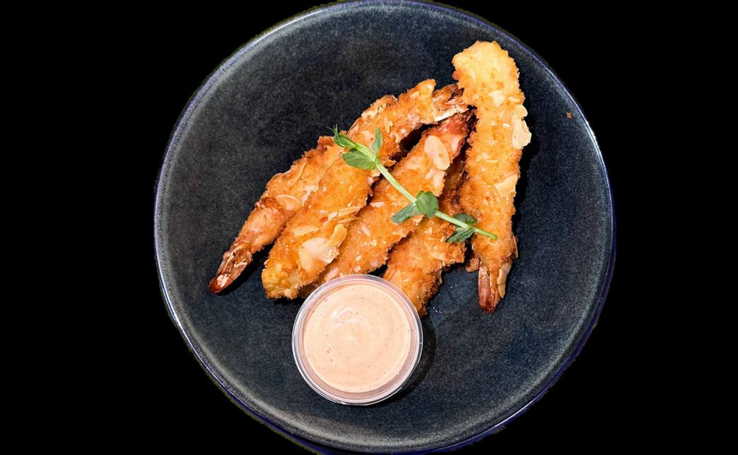 Креветки "Киспи в миндальной темпуре" + соус спайси (130 г, 5 шт)
